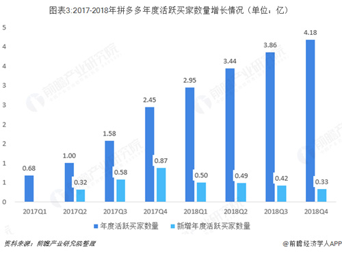 图表3:2017-2018年拼多多年度活跃买家数量增长情况(单位:亿)