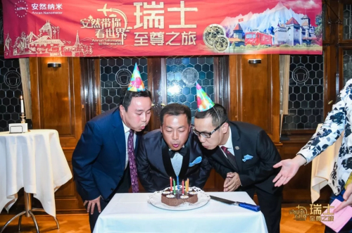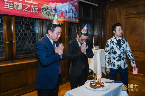 ▲ 为郑国新、王海舟先生庆祝生日,全场一起唱生日歌,陶总与寿星一起许愿、吹蜡烛、切蛋糕