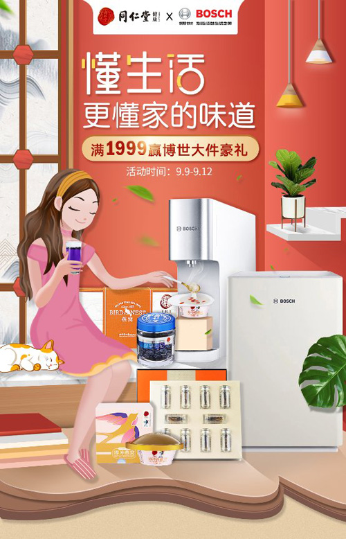 同仁堂350周年活动将在9月惊艳开启,迸发源源不断的新鲜活力,此次联合国际品牌博世,携手京东,引领全民升级健康品质生活,共同传递“懂生活,更懂家的味道”。