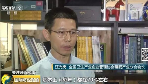 全国卫生产业企业管理协会睡眠产业分会会长汪光亮:睡眠产业这些年的增长基本上每年都在20%左右,现在很多人开始对睡前进行投资,这个市场还是蛮有想象力的。