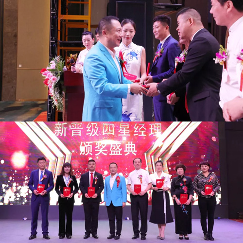 铸源集团新零售教育副总裁、商学院执行院长王超先生为新晋四星经理颁发证书,并合影留念。