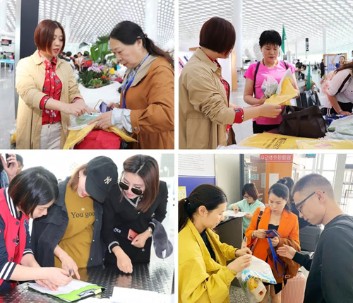 绿之韵工作人员为家人们发放旅行物料