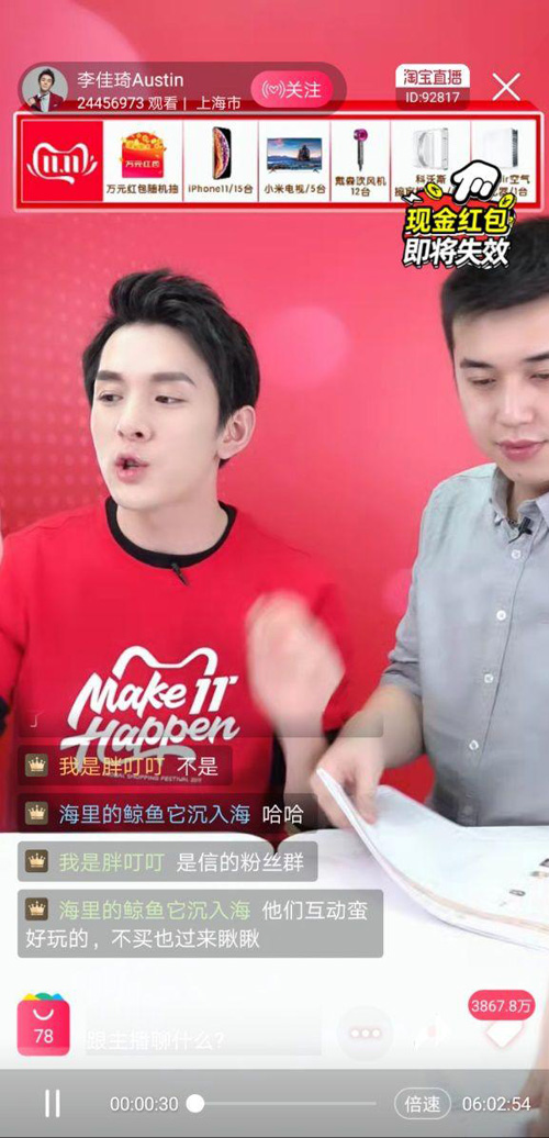 作为淘宝直播的顶级流量播主,李佳琦拥有无可比拟的带货成绩——10秒钟卖出10000瓶洗面奶,15分钟卖出15000支口红,5个半小时直播营业353万元。虽然目前尚未有具体带货量公布,不过11日李佳琦在淘宝直播时长达6小时,观看用户超过3000万,共抛出78条商品链接,带动的成交额一定非常可观。