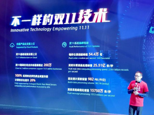 图为张建锋介绍支撑双11的底层技术 中国证券报记者杨洁摄