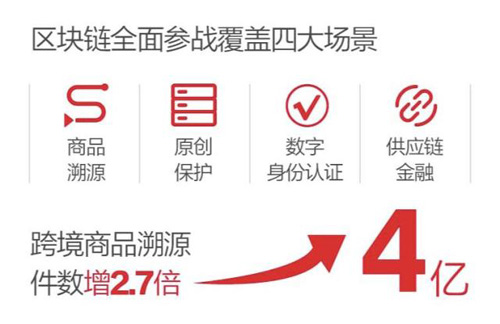 值得注意的是,区块链也在今年天猫双11中全面参展。井贤栋介绍,2019年天猫双11,超过4亿件跨境商品添加了区块链“身份证”,比去年多了2.7倍。区块链存证技术首次应用于保护“卖家秀”,500万商品图片版权信息1秒登记在链,有效防止其他平台商家盗用、侵权。区块链技术在供应链金融方面的解决方案,帮助3万天猫双11小微商家获得了供应链贷款。