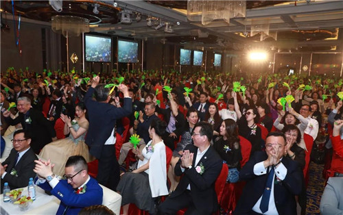 下午1:18,在全场绿叶家人的热烈欢呼声中,徐建成董事长庄重敲响闪亮的金锣,为台湾绿叶国际股份有限公司1周年庆典正式拉开大幕。