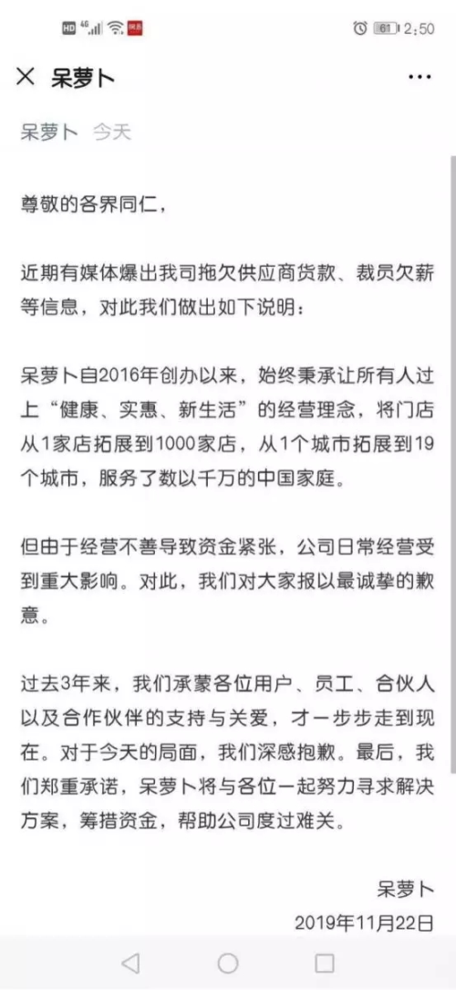 呆萝卜爆雷:烧光投资人的钱 你的余额也悬了