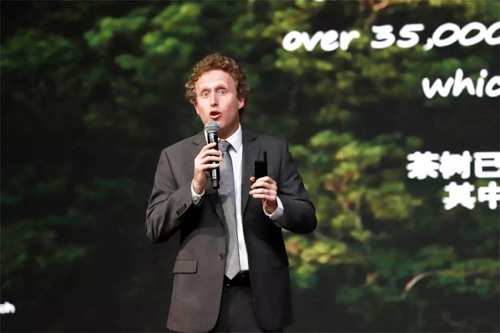 澳洲麦卢卡蜂蜜的全球执行总裁Ben上台讲解澳洲产品。采用直接采摘提取的工艺流程,结合抗菌、消炎、抗微生物等的特色工艺,打造出的纯天然、有机、无污染、无公害产品,闻名于欧洲、美国等地,令人赞不绝口。