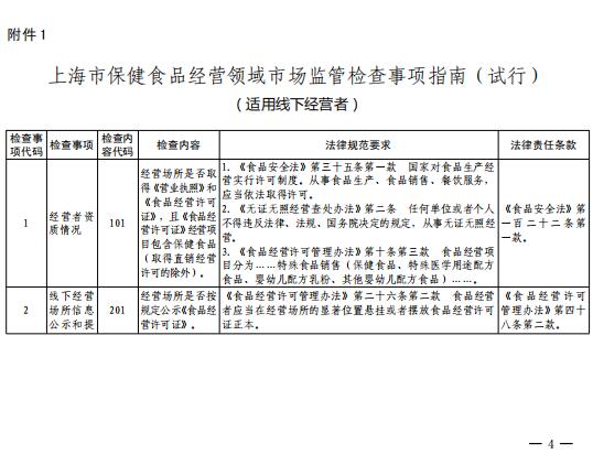 上海印发保健食品经营市场监管检查事项指南