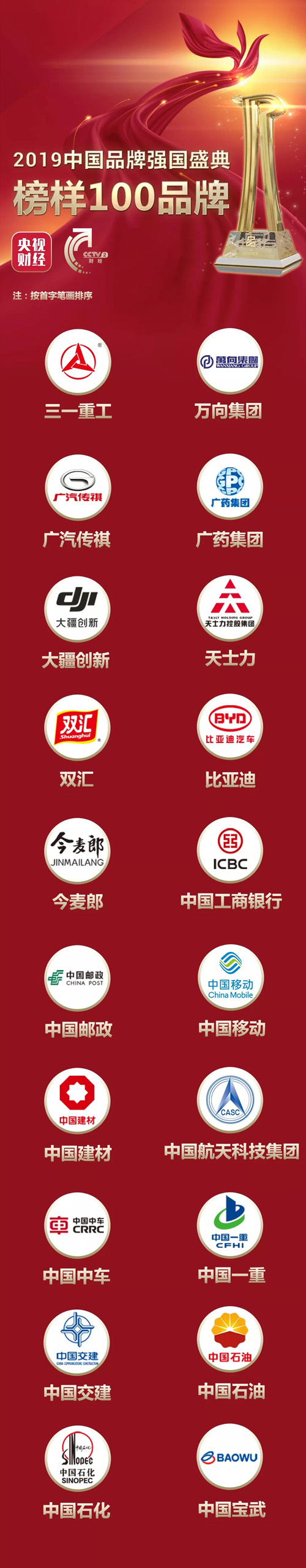 附:“2019中国品牌强国盛典榜样100品牌”完整名单