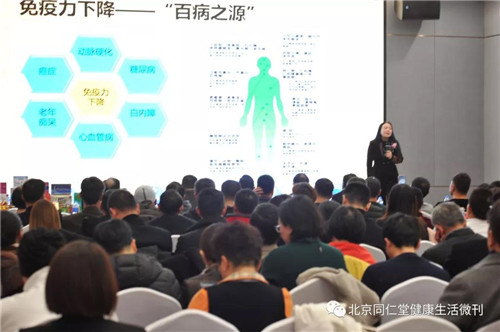 陈泓梅女士用幽默风趣的话语,娓娓道来三款产品原材料选材的考究和生产技术的优势,令参会来宾耳目一新,加深对同仁堂古训“炮制虽繁必不敢省人工,品味虽贵必不敢减物力”的认识。