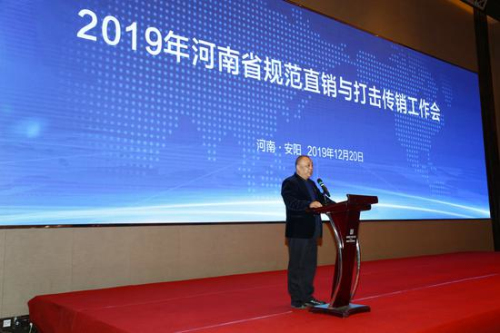 12月20日上午的河南省规范直销与打击传销工作会议上,国家市场监督管理总局价格监督检查和反不正当竞争局处长职向阳发表讲话。他传达了全国传销总体形势以及河南的情况,并表示河南作为唯一新设打传办的地区,在案件查处和区域协作方面做出了优秀的成绩。河南省市场监督管理局副巡视员李东升发表讲话,他表示2019年在市场监管系统机构改革的特殊时期,规直打传工作绝对不能等,不能靠,确保改革过渡期间工作不间断、业务不断线,保持打传工作高压态势,逢传必打。最后他表示要确保规直工作持续性,依法规直,确保规直打传工作的不掉线、不间断、不泄压、不违纪,持续保持河南省规直打传工作的良好态势和工作成果。河南省市场监督管理局规范直销打击传销办公室主任刘锋表示我省规直打传工作取得了一定成绩,加强重点地区整治和重大传销案件的查处,坚决遏制传销活动的发展蔓延,河南已连续两年跳出全国传销“重灾区”省份。最后,河南省市场监督管理局规范直销与打击传销办公室副主任侯立宁进行了会议总结。