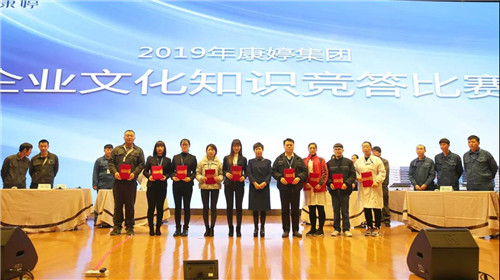 康婷集团总裁杨琪为获奖选手颁发了荣誉证书,并给予大家热烈的祝贺和深切的鼓励。杨琪总裁说道,集团在由小到大由弱到强的过程中,除了得益于各级政府的大力帮扶,更得益于每一位员工的辛勤付出和努力。企业文化作为一个企业的核心价值对企业有强大的凝聚作用,像知识竞赛这样的企业文化普及活动要常态化、普遍化,才能让广大员工对企业文化有更好的理解、认知以及践行。