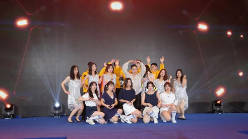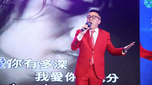 在掌声和欢呼声中,徐董登台分享创业感慨后,为全场观众带来了《月亮代表我的心》、《爱你一万年》等著名金曲,引发全场倾情大合唱,将晚会气氛推向最高潮。