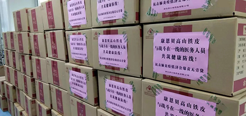 在此,特向你们送上公司的铁皮石斛产品,希望能为你们的健康加油,解你们的疲累。你们的健康,是全体康恩贝人的心愿,相信也是所有浙江人民的心愿!