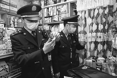 近日,浙江省安吉县市场监管局联合县人民检察院开展“亮剑2020”保护保健食品、化妆品安全综合执法行动,重点对商户证照等营业资质、产品标识、宣传用语等进行执法检查,并现场责令商家整改不规范宣传用语等问题。图为该局执法人员对某经营店保健产品标识进行检查。