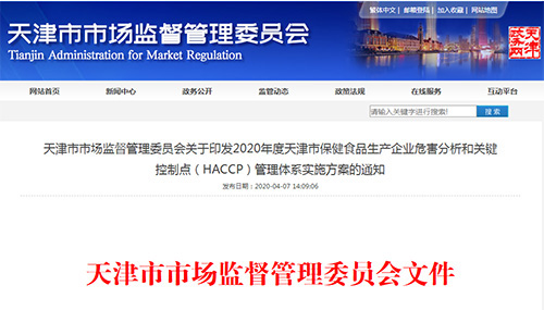 市市场监管委制定印发《天津市保健食品生产企业危害分析和关键控制点(HACCP)管理体系实施方案》进行部署。