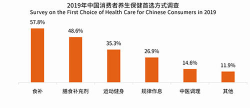 iiMedia Research(艾媒咨询)数据显示,食补成为消费者最喜爱的养生保健方式,占比高达57.8%,其次是膳食补充剂,占比为48.6%。艾媒咨询分析师认为,受传统文化影响,中国消费者对食补的认知度和接受度普遍较高,为保健品行业尤其是中草药保健品市场奠定了广泛的群众基础。
