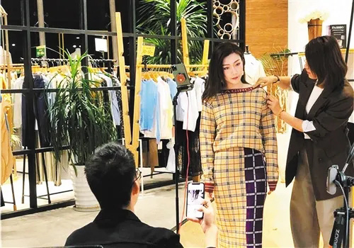广州一服装商家正在直播服装新品。