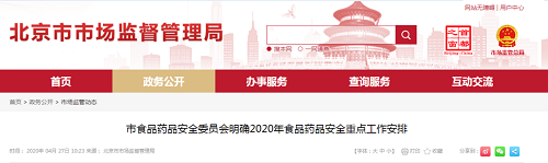 4月27日,北市食品药品安全委员会印发了《北京市2020年食品药品安全重点工作安排》(京食药安〔2020〕4号,以下简称《工作安排》)。