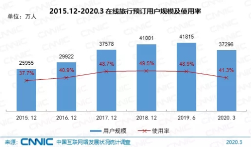 截至2020年3月,我国在线旅行预订用户规模达3.73亿,较2018年底减少3705万,占网民整体的41.3%。受新冠肺炎疫情影响,短期来看,在线旅行预订行业受到较大冲击,用户规模大幅下降;中长期来看,随着疫情逐渐好转至结束,在线旅行预订行业有望进入反弹期。