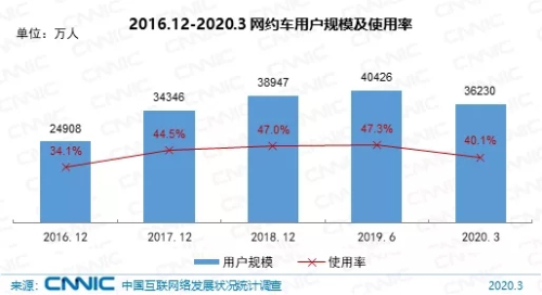 截至2020年3月,我国网约车用户规模达3.62亿,占网民整体的40.1%。受新冠肺炎疫情影响,部分城市暂停了网约车运营服务。在疫区城市,公共交通工具停运,多家网约车平台组织司机为医生病患接送和特殊服务保障提供运力支持。中长期来看,网约车用户规模将会恢复性增长。