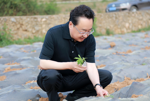 人大代表焦家良查看工业大麻出苗情况