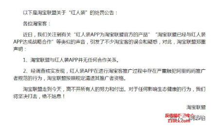 其实早在2017年11月27日,淘宝就发布声明,宣称与红人装无任何合作关系,彻底划清界限。