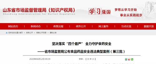 山东省市场监管局出台《关于在食品药品执法办案中落实“四个最严”要求若干问题的意见》,要求全省各级市场监管部门坚定不移落实“四个最严”,坚决打击各类食品药品违法行为,加大典型案件曝光,以敢于担当尽责、严格监管执法的实际行动,向全社会释放市场监管部门有案必查、查案必严的强烈信号。各地各级市场监管部门按照《意见》要求,强化食品药品安全监管,对违法行为坚持“零容忍”,做到露头就打、重拳出击、绝不手软,从严从快从重查处违法案件。现公布第三批典型案例。