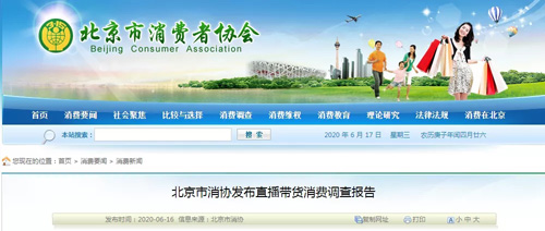 6月16日,北京市消协发布了直播带货消费调查报告。