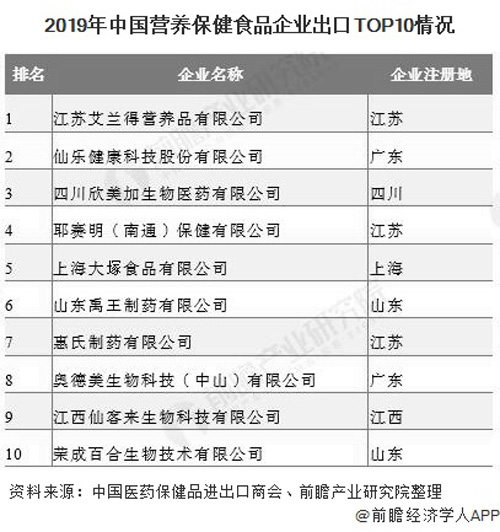 而在我国营养保健食品出口市场的竞争格局上,根据中国医药保健品进出口商会统计信息显示,目前,我国华东地区的营养保健食品企业出口实力加强,占据“十强名单”中的7席。