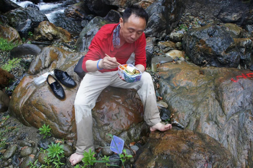 为了把三生产业园打造成为我心目中的样子,2011年,我在朋友的引荐下,远赴广西去挑选摆放在产业园区里的奇石,算得上是“跋山涉水”了,这是朋友在旅途中的抓拍,也一定是大家没见过的“宝哥”吧。