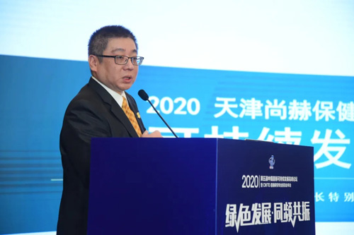 尚赫公司执行长特别助理、尚赫公益基金会秘书长陈政裕代表尚赫在论坛上发表《2020尚赫可持续发展报告》,并接受中国世界贸易组织研究会副会长兼秘书长李铭林为尚赫公司颁发的“实践可持续发展先行企业”荣誉。