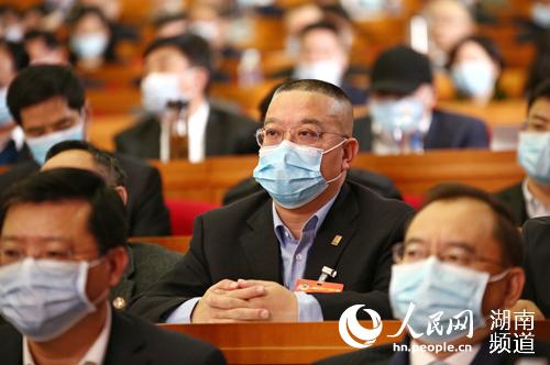 政协湖南省第十二届委员会第四次会议现场,胡国安在听取报告。受访者供图