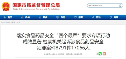 2月19日,最高人民检察院、国家市场监督管理总局和国家药品监督管理局联合发布15个落实食品药品安全“四个最严”要求专项行动典型案例。