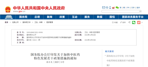 近期,由国务院办公厅发布的《关于加快中医药特色发展的若干政策措施》正式印发于各省、自治区、直辖市人民政府、国务院各部委及各直属机构,从提高中药产业发展活力等七大方面推动中医药特色发展。