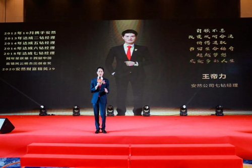 安然公司七钻经理王帝力先生为全会进行精彩缔结,通过自身自强不息的故事,让每一位有梦想的伙伴深深懂得,选择安然,成功必然!