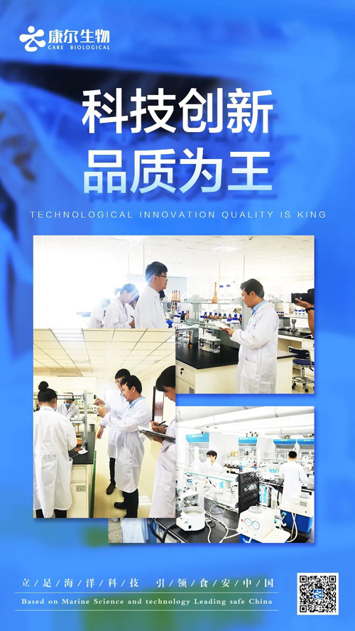 食品安全是最大的民生,担当是最好的践行。康尔生物自成立以来,始终恪守着“科技立业”的发展理念。依托集团全球海洋科技、全球前沿科技、中草药现代化三大科技引擎,构建多元化、多渠道、多维度的科技创新体系,坚持用品质和诚信培育品牌,努力建设全过程的食品安全管理体系,组建了专业化食品安全检测队伍,不断完善产品抽检体系,持续推进质量可追溯体系建设,重点加强了从源头养殖、包装、运输、物流、服务等环节的品控追溯,全方位保障从田间到餐桌的食品安全,真正做到让老百姓吃得放心。