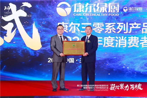 颁发仪式:康尔三零系列产品荣获“2020年度消费者最受信赖的安全食品奖”