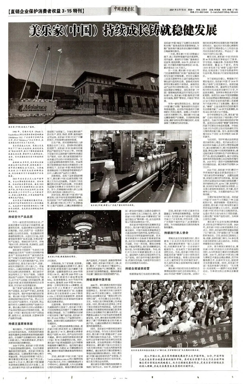 3月15日,《中国消费者报》在其特刊上以“保护消费者权益”为主题,刊登了美乐家(中国)在企业发展、保护消费者权益以及企业社会责任上的成就和贡献。