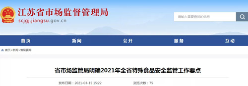 江苏:明确2021年特殊食品安全监管工作要点