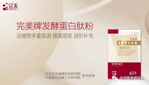 值得一提的是,与完美公司达成战略合作的中国食品发酵工业研究院,基于“酶膜耦合”定向酶解和复合菌种发酵技术,开发出富含多重活性成分的创新性原料——发酵蛋白肽粉。2020年12月20日,完美牌发酵蛋白肽粉上市。