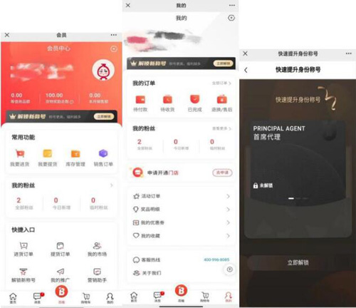 从相关方了解到,百植健康的产品基于线上店铺销售,从会员到橙色店铺分成6个级别,各级别的权益也逐级增多。注册成为会员,享受会员价和优惠券,从高级会员开始享有分享奖励。高级会员可拥有个人线上店铺,店铺有进货、提货、库存管理、销售订单管理这几个店铺运营功能。