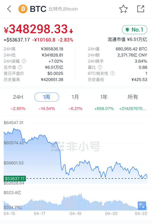 与此同时,近两日比特币坐上过山车,上周末从64000美元高点下跌,跌幅一度达到19%,19日比特币价格稳定在56000美元上下,今日(20日)再次暴跌,在55000美元左右。