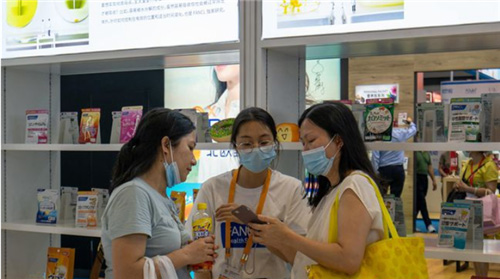 儿童补钙食品、孕妇维生素、女士美容胶原蛋白、中老年健骨保健品......在3号、4号展馆的高端食品保健品展区,各种名目、功效的保健食品琳琅满目,令人应接不暇,产品分类越来越多元且细致,尤其针对健身人士、爱美女性、高血糖人士推出的高蛋白、美容养颜等营养保健产品也受到不少关注。