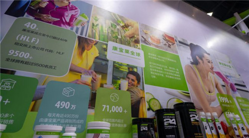 除此之外,在4号馆的高端食品保健品展区,国际知名营养品企业康宝莱现场展示了本土生产的每日营养、目标营养、运动营养和护肤四大品类40余款产品,其中,一款“有颜有型”的系列产品吸引了众多年轻观展者们前来围观、询问。