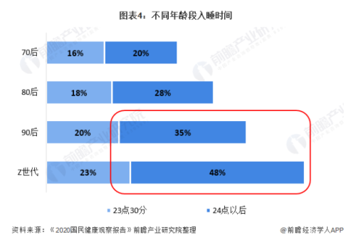 中国经济的飞速发展下,90后、Z世代的睡眠问题凸显,学业繁重,工作繁忙都在挤压着他们的睡眠时间,还有日益增多的“报复性熬夜”人群进一步减少了他们的睡眠时间。尽管熬夜的危害大家心知肚明,但为了获得熬夜带来的短暂快乐,近一半的95后依然选择在凌晨后入睡。除此之外,社会与经济的高速发展也增加着年轻一代的压力,“入睡困难”和“睡眠质量差”也是困扰他们的难题。