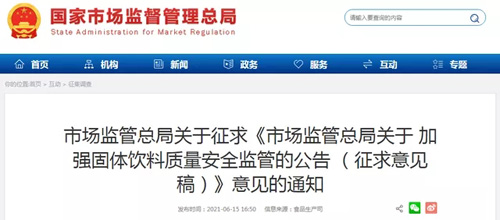 总局就加强固体饮料质量安全监管的公告征意