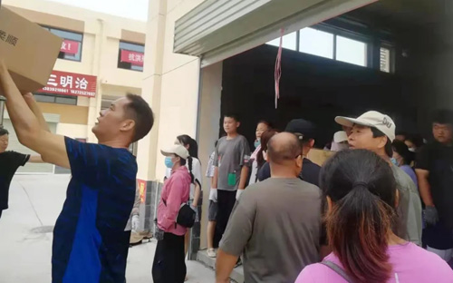 受台风“烟花”影响,27日傍晚,发货仓所在的苏州昆山同样乌云密布,下起了暴雨。顶着风雨,工作人员将一箱箱物资从仓库有序搬运至货车上,迅速完成打包、装箱、运输等一系列工作。在清点完毕后,满载救灾物资的货车于晚7时左右从物流园驶出,马不停蹄地连夜冒雨赶往河南鹤壁抗洪救灾前线。