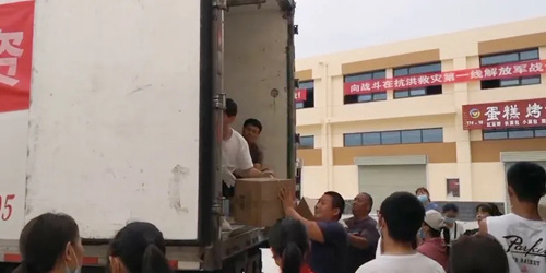 绿叶第二批救灾生活物资连夜运抵河南鹤壁
